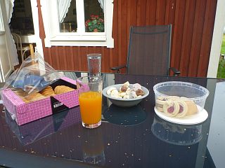 Früh morgens regnete es immer noch. Aber nach einem guten Frühstück sah die Welt schon wieder anders aus und die Sonne blinzelte durch die Wolken. Noch vormittags hatten wir wieder alles ins Auto gepackt und waren nach Torsby gefahren, um für die kommende Woche Lebensmittel einzukaufen. Im örtlichen ICA-Supermarkt fanden wir alles was wir brauchten und auch einige schwedische Spezialitäten, die wir probieren wollten. Nach dem Einkauf war es allerdings noch etwas zu früh, um zum Haus zu fahren, denn es war vereinbart, dass wir nicht vor 15 Uhr ankommen. Also machten wir einen Geocache, der in einem nahen Pfadfinderlager versteckt war. Das Lager war verlassen, so konnten wir uns ungestört umschauen und nach dem Fund auch noch eine Weile am Badesteg in die Sonne setzen.